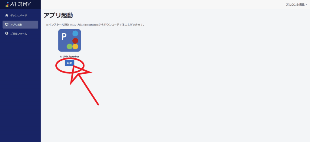 - STEP.2右メニューにあるアプリ起動をクリック