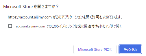 起動をクリックすると以下の画像のようなポップアップが出てくるので、「Microsoft Storeを開く」をクリックしてください。