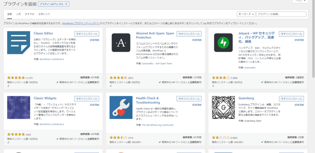 wordpressのメニューにあるプラグイン→新規追加。から開けます。