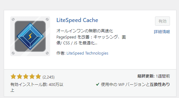 LiteSpeed Cacheとは、Litespeedに対応したサーバーのみで使える、高速化プラグインです。