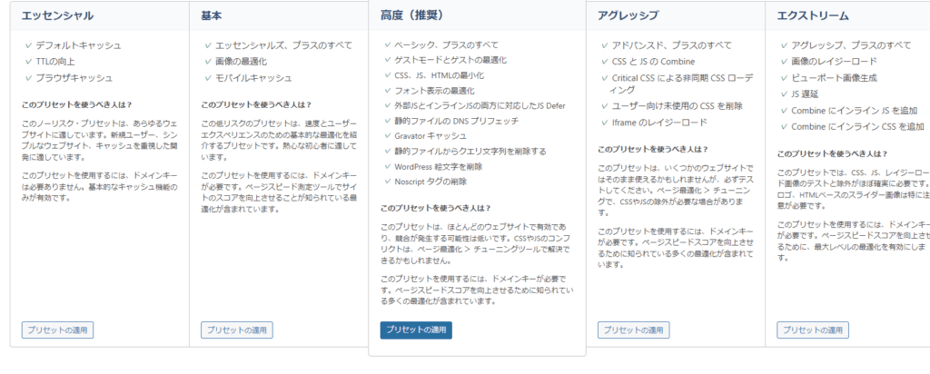 また、プリセットという機能ものがあり、ボタン一つで簡単に高速化できます。