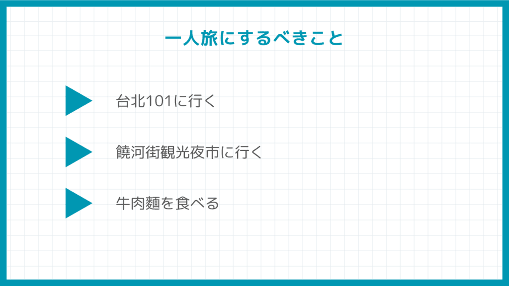 次に、台湾男性一人旅で必ずするべきことを3つご紹介しました。