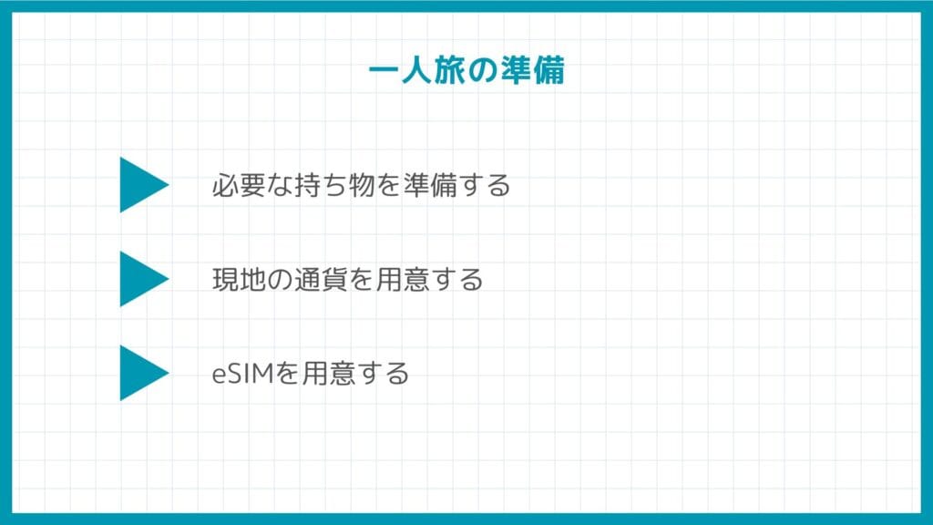 台湾男性一人旅の準備としては以下の3点が重要です。